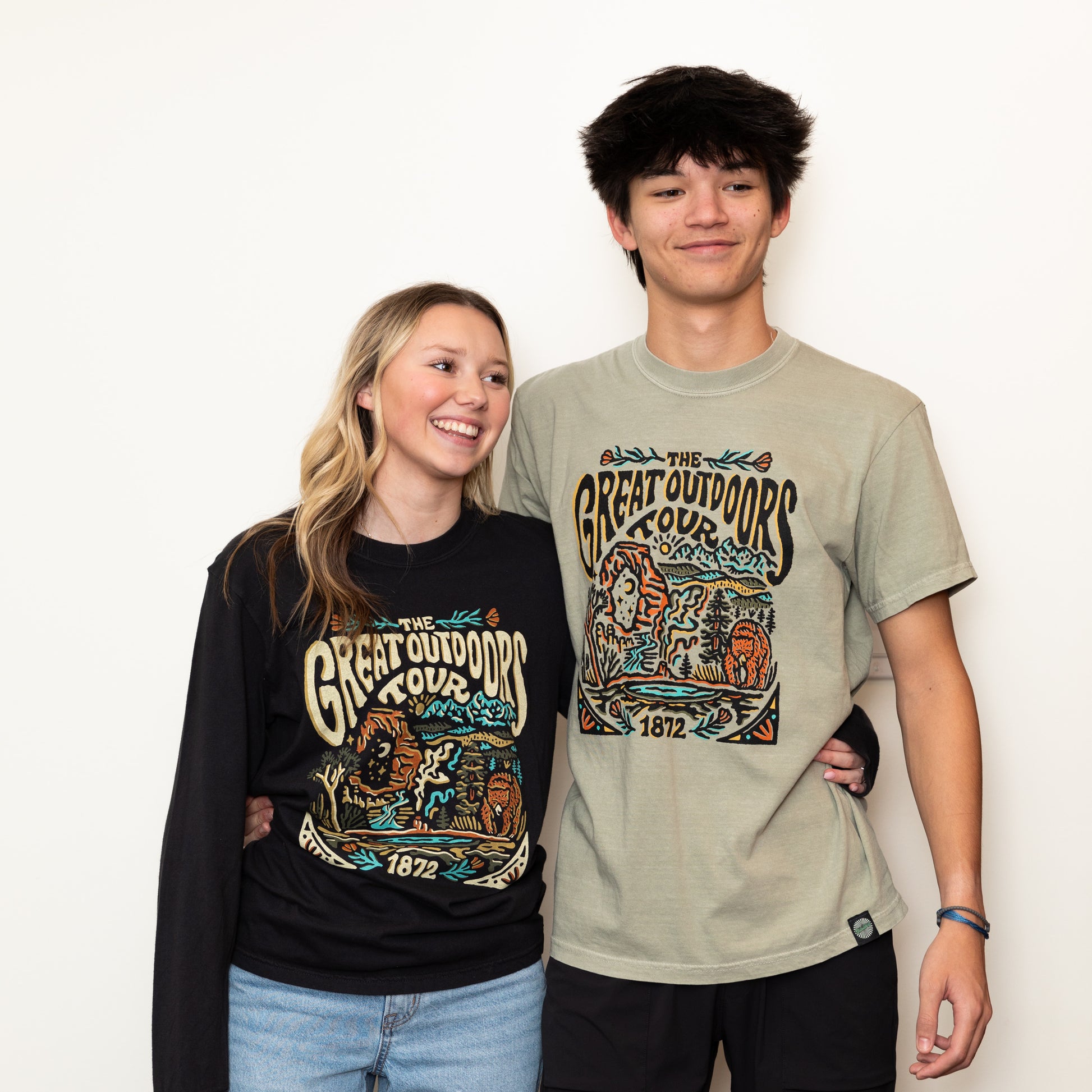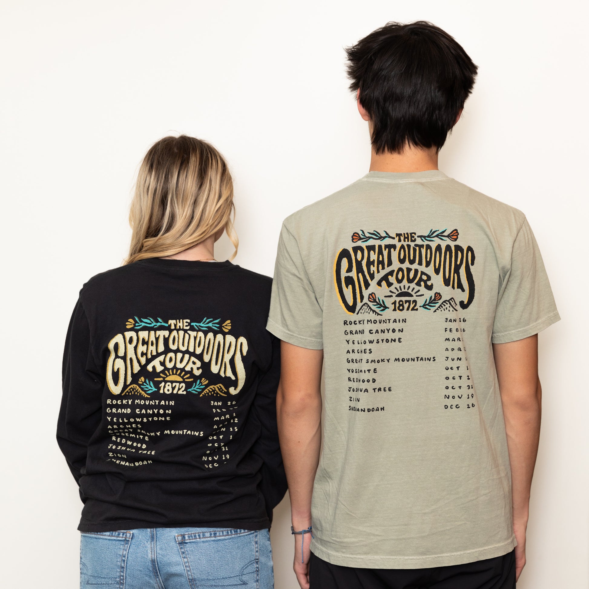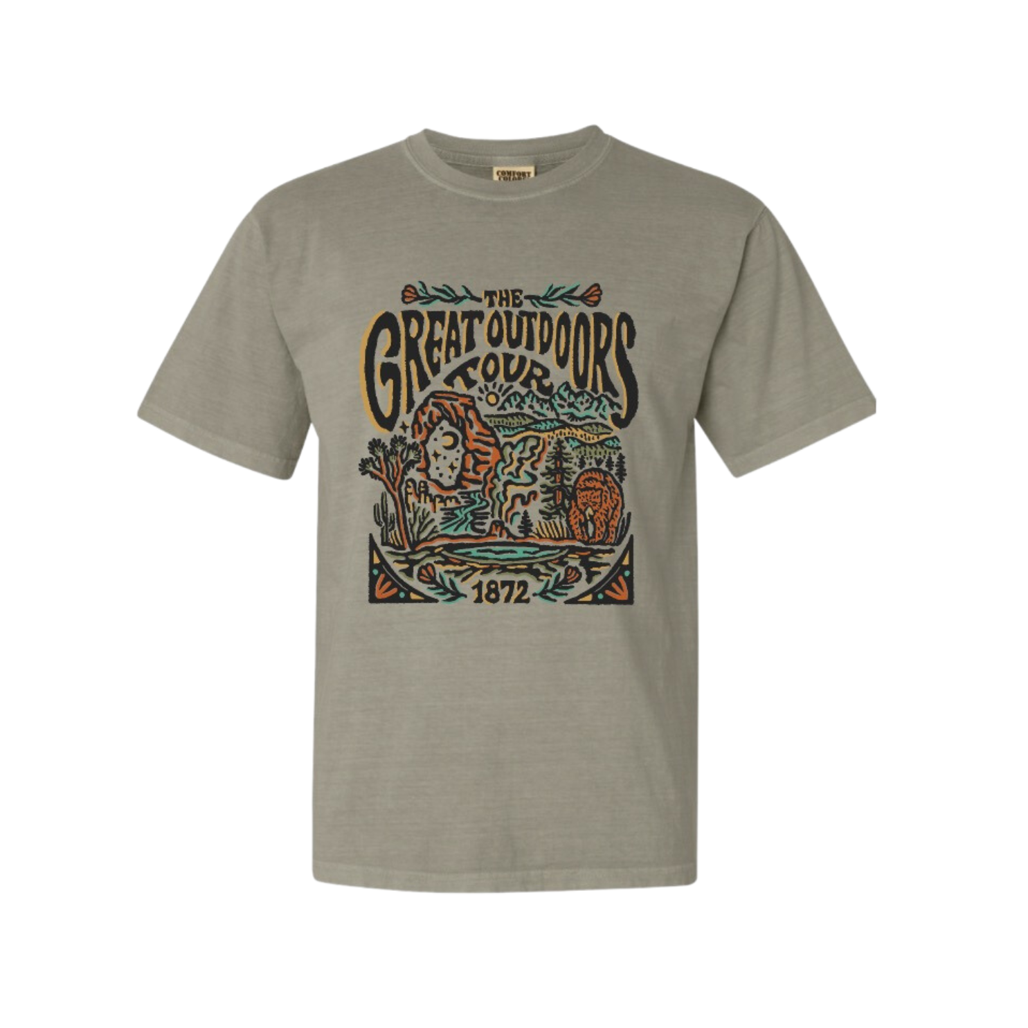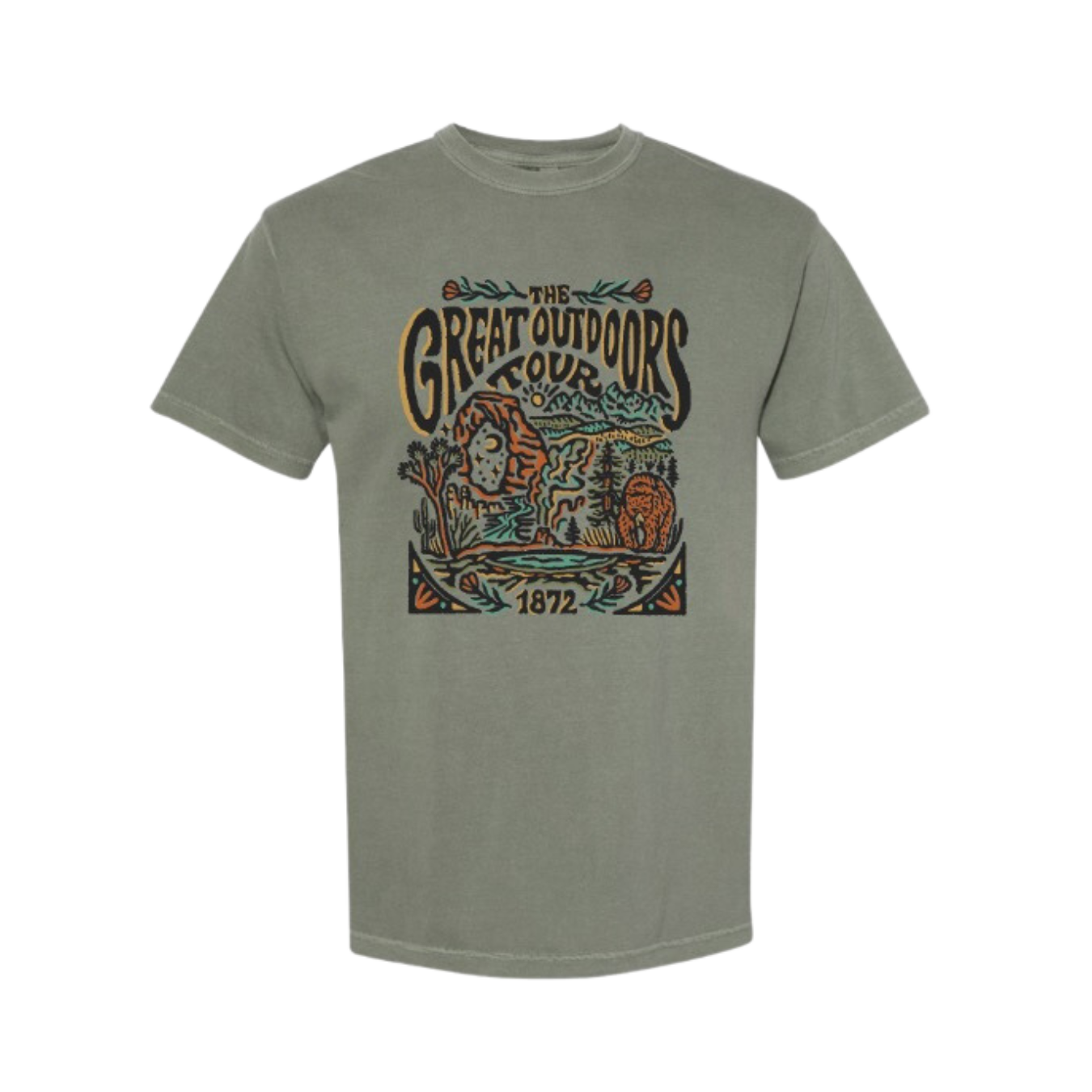 Embark on a journey with the Great Outdoors Tour Tee! This tee features a retro-style national park tour band logo, so you can explore nature in vintage style. Perfect for any outdoor enthusiast! A wardrobe must-have!