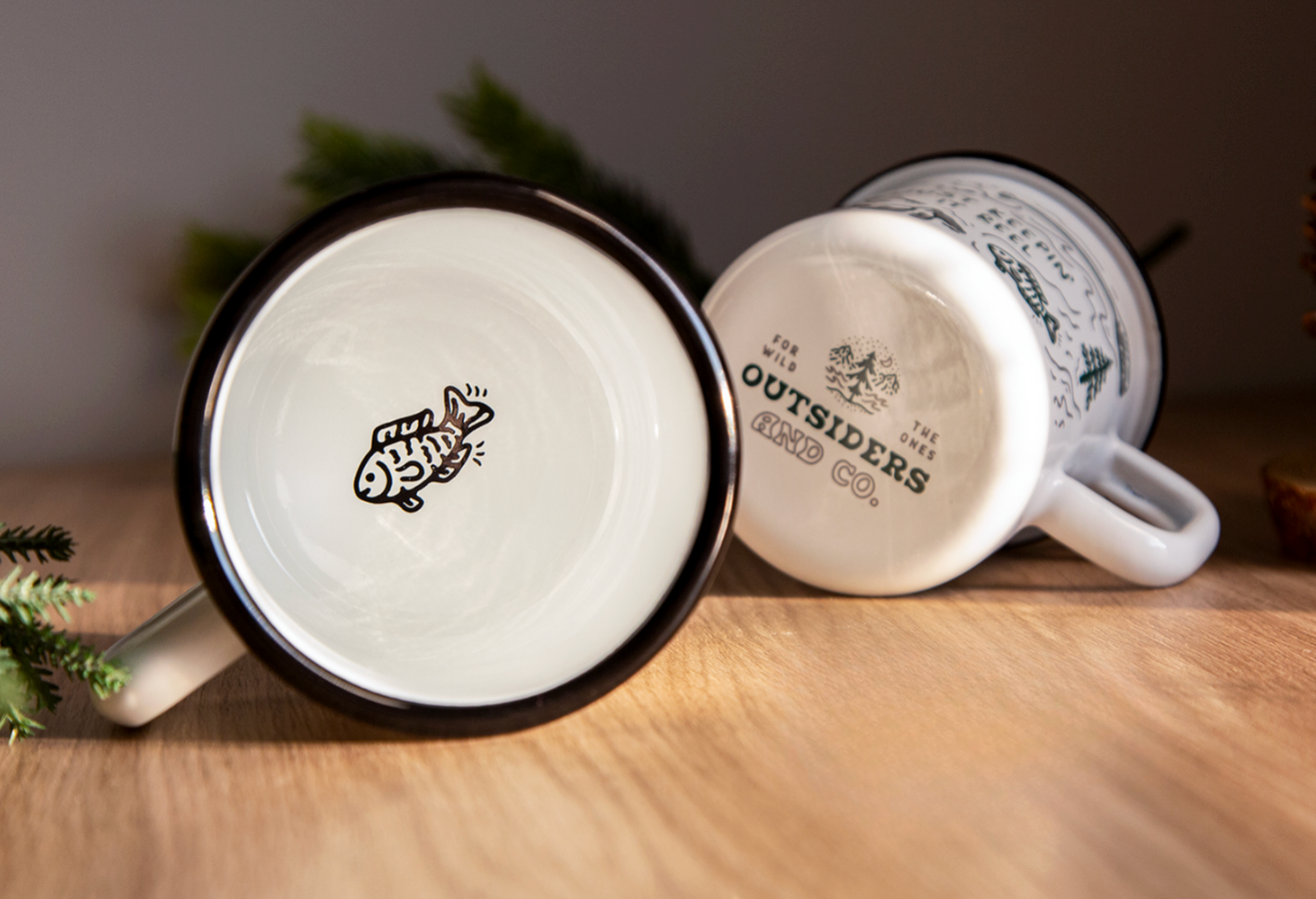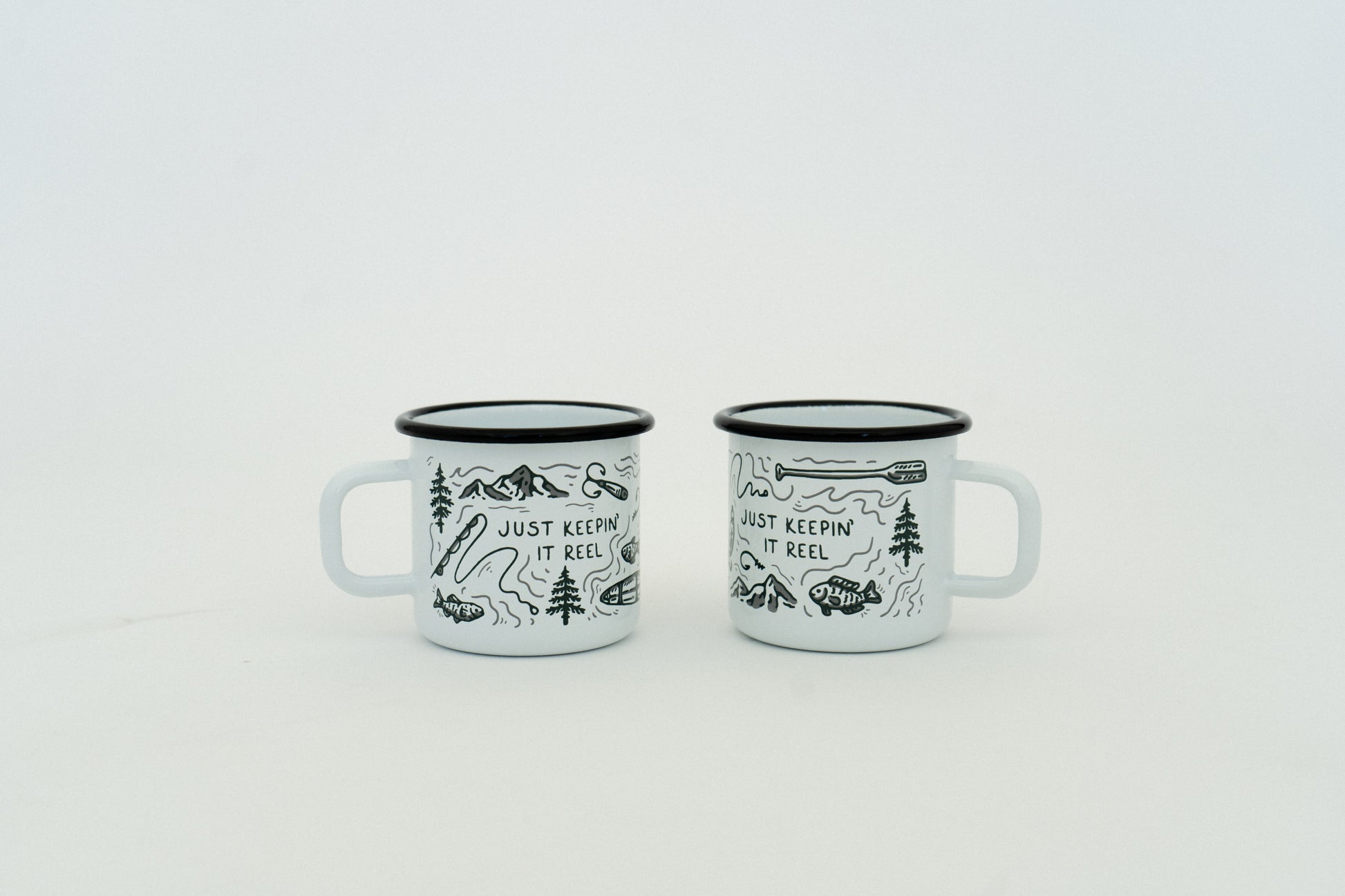 Just Keepin' It Reel enamel Mug with the cutest surprise fish at the last sip and Outsiders and Co. branding on the bottom!