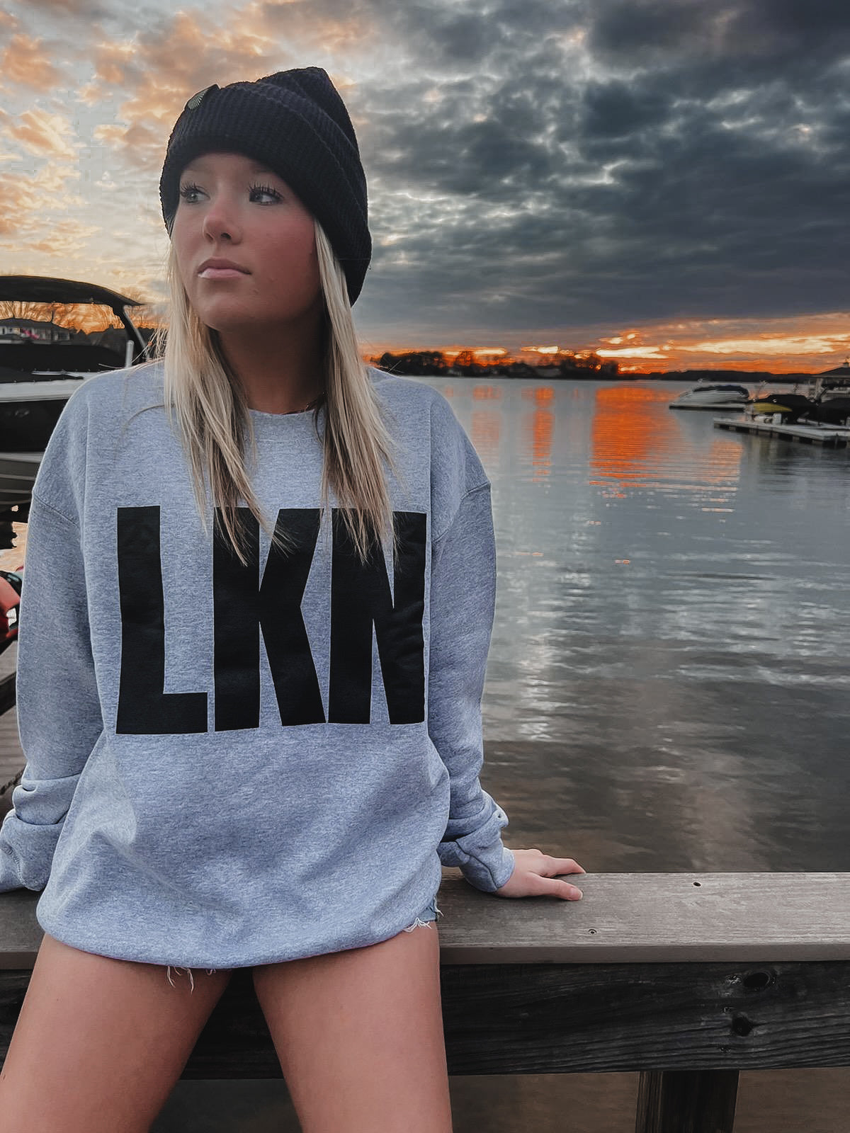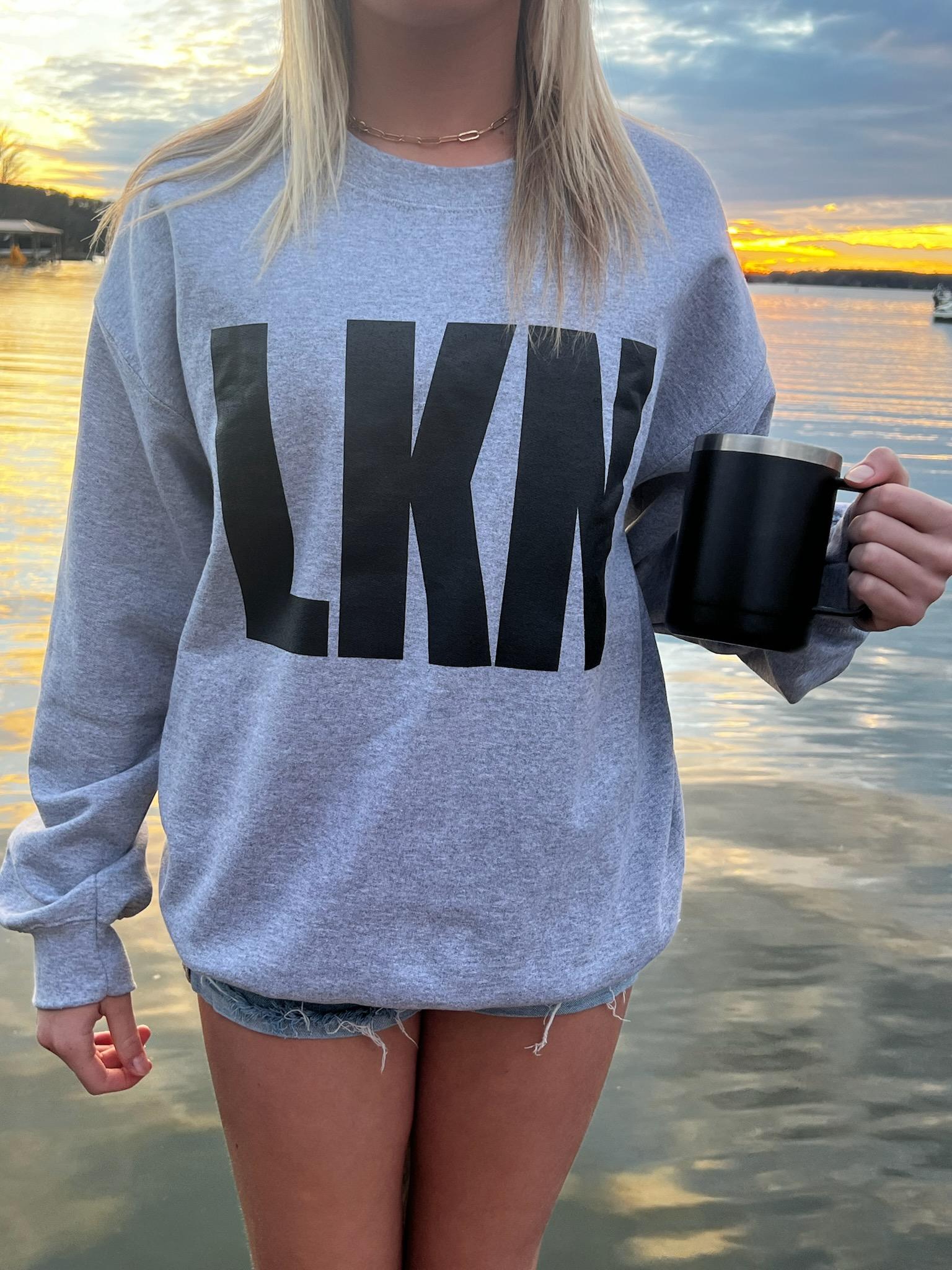 Where are our Lake Norman people? This black and grey style with large LKN lettering is the perfect bold and edgy look to show off your love for lake life.
