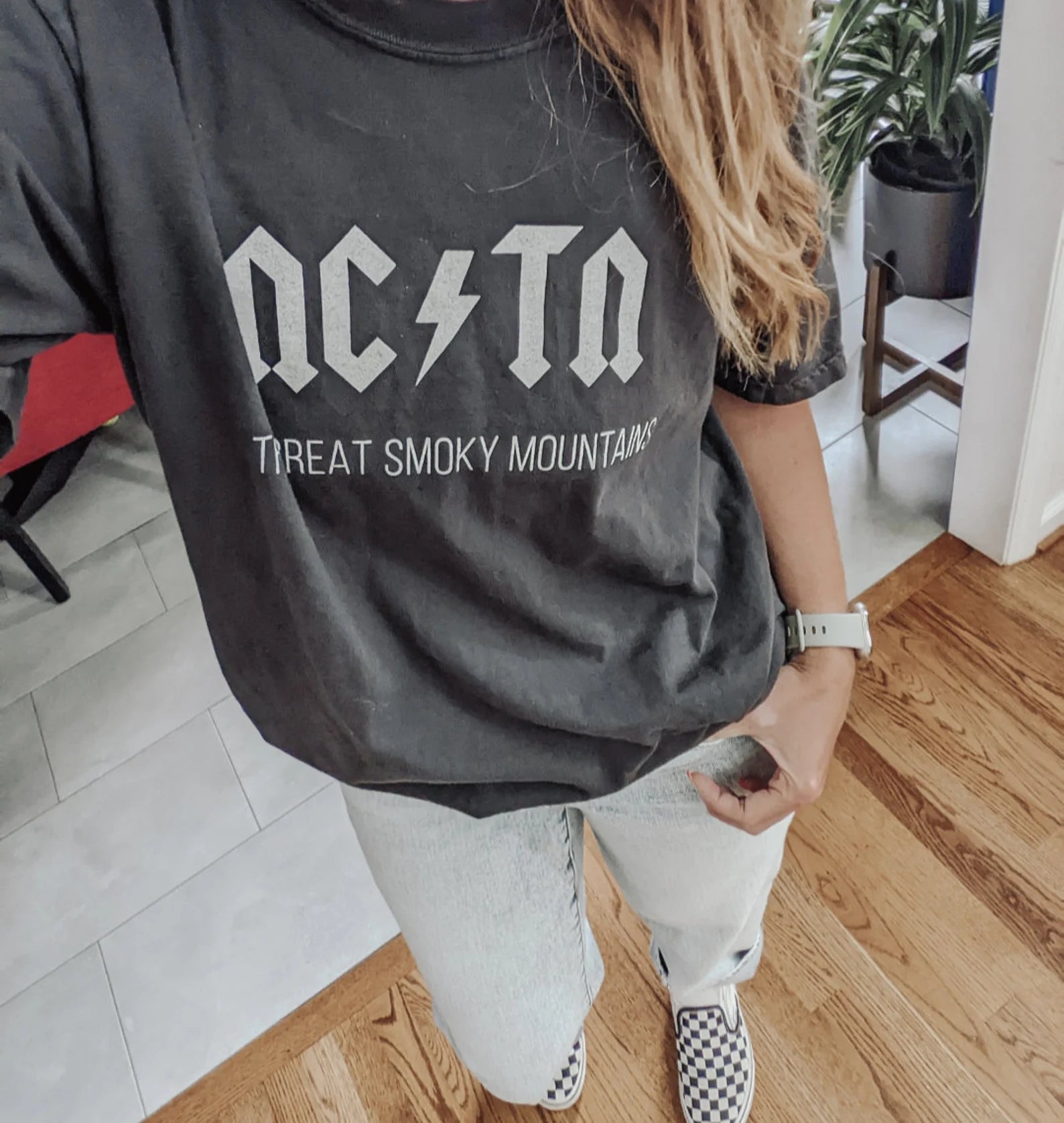 Do you love a vintage band tee? Then you'll love our AC/DC inspired “Great Smoky Mountains National Park” on the much requested Comfort Colors® tee. The vintage-inspired original design makes such a unique gift for the adventurer in your life, or for yourself!