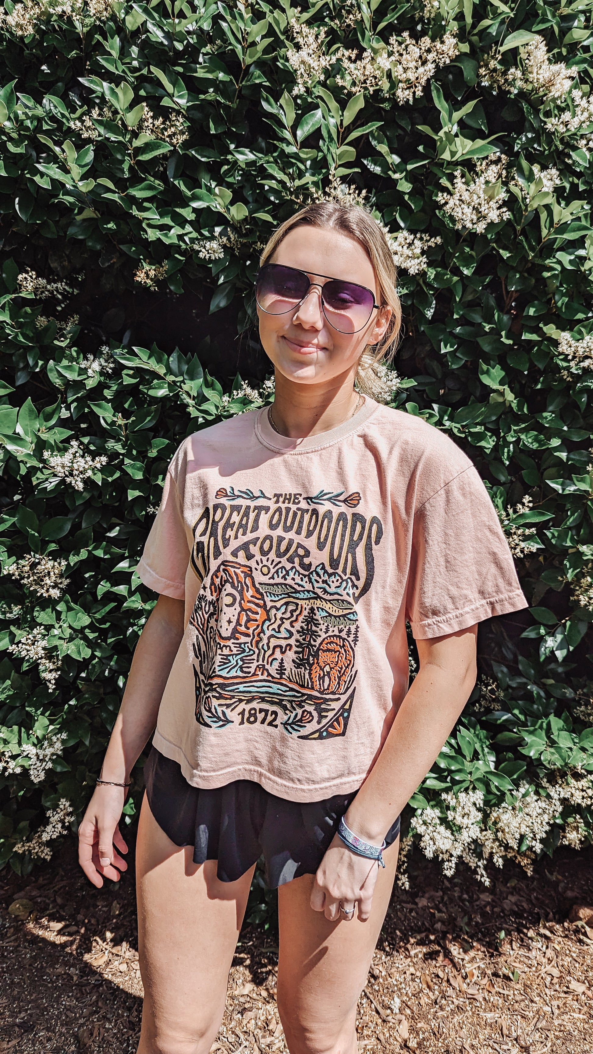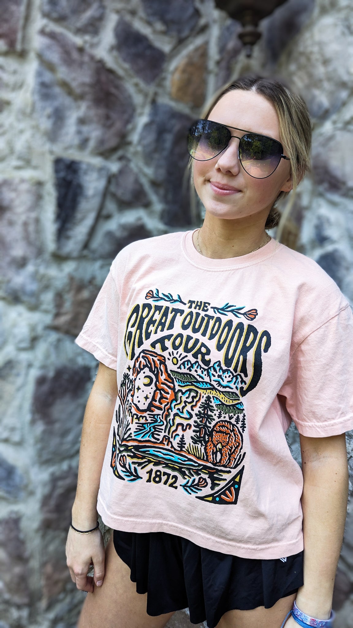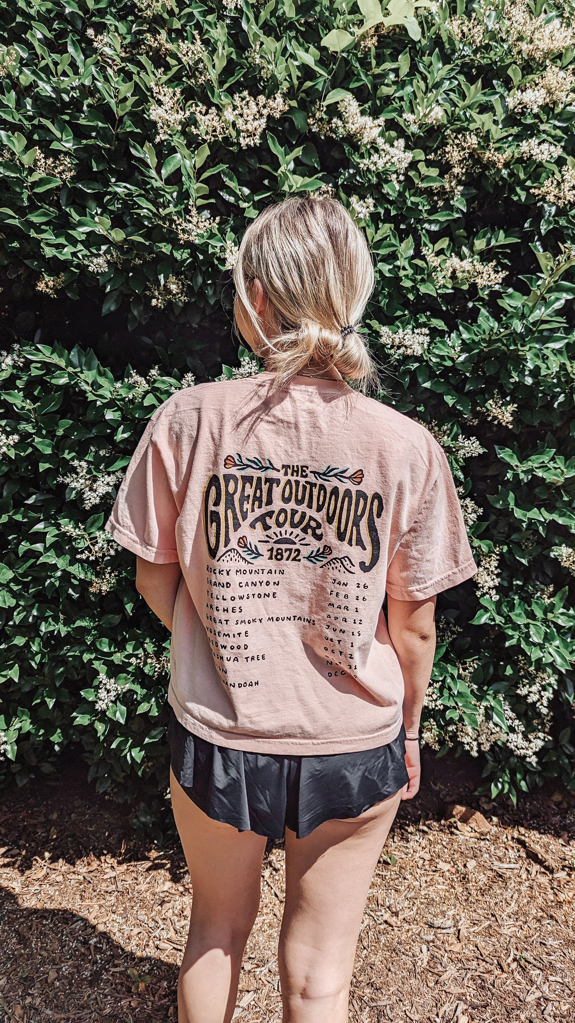 Embark on a journey with The Great Outdoors Tour Tee! This tee features a retro-style national park tour band logo, so you can explore nature in vintage style. Perfect for any outdoor enthusiast! A wardrobe must-have!